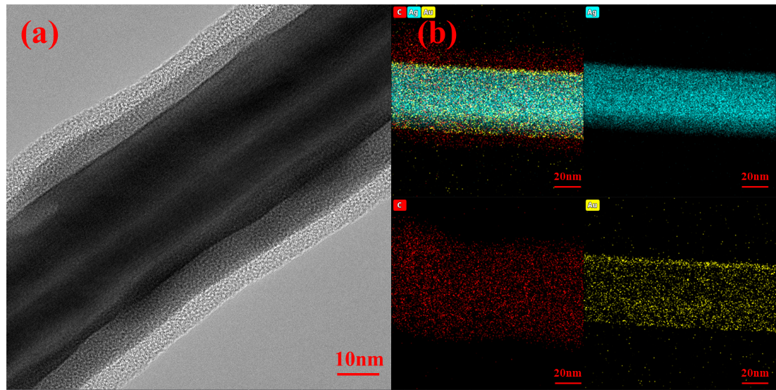 金包覆银纳米线是采用液相原位沉积技术在银纳米线表面包覆一层几个纳米厚的金薄膜制得,金包覆银纳米线相较普通的银纳米线具有更好的稳定性,耐氧化、耐湿热老化、耐电化学腐蚀等性能大大提升。